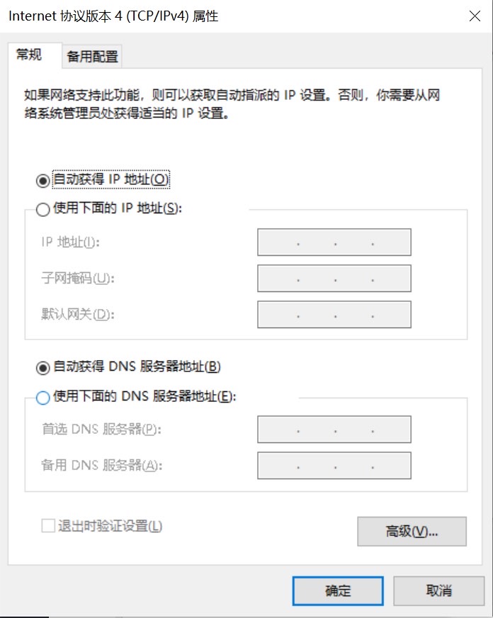 常规属性界面选中自动获取IP地址以及自动获取DNS服务器地址即可