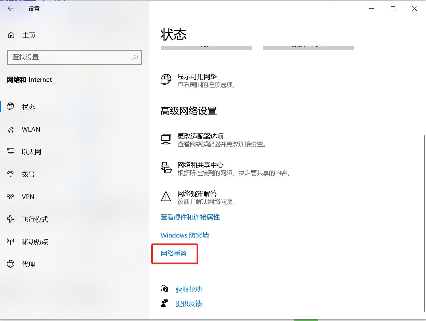 - 另一种方法是在设置中进行网络重置: