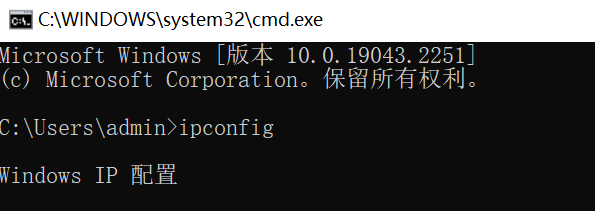 在CMD中输入ipconfig,回车,检查是否拿到了正确的ip: